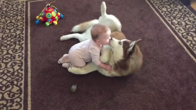 It’s no secret that dogs make great companions for kids. And the bond can form at the youngest of ages. A dog can just sense that this is its family and takes it upon itself to protect them and to be as gentle as possible while they’re still babies. The Husky and baby in the video below are the perfect example of this.