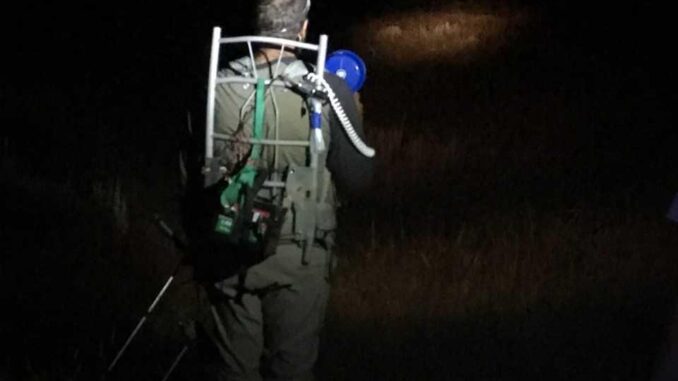 Greater sage-grouse are notoriously good at hiding their chicks in the day because sage-grouse chicks blend in thoroughly with their surroundings. Therefore, it is very difficult to know when tracking her in the day if a female sage-grouse still has her chicks. For our research objectives, it was critical that we knew with certainty that hens in our study successfully raised their chicks to an age they could live independently. To gain this certainty, we tracked our transmitted hens at night and spotlighted them to determine if the hen was roosting with chicks about six weeks after she hatched her nest. Female sage-grouse actively brood their chicks at night and often you will find some of the chicks tucked under the female’s wings. In our study, we found females that we were sure still had their chicks that were not with chicks when we spotlighted them and we found others that we thought had lost their chicks but were surprised to find chicks tucked under the female’s wings when we spotlighted her.