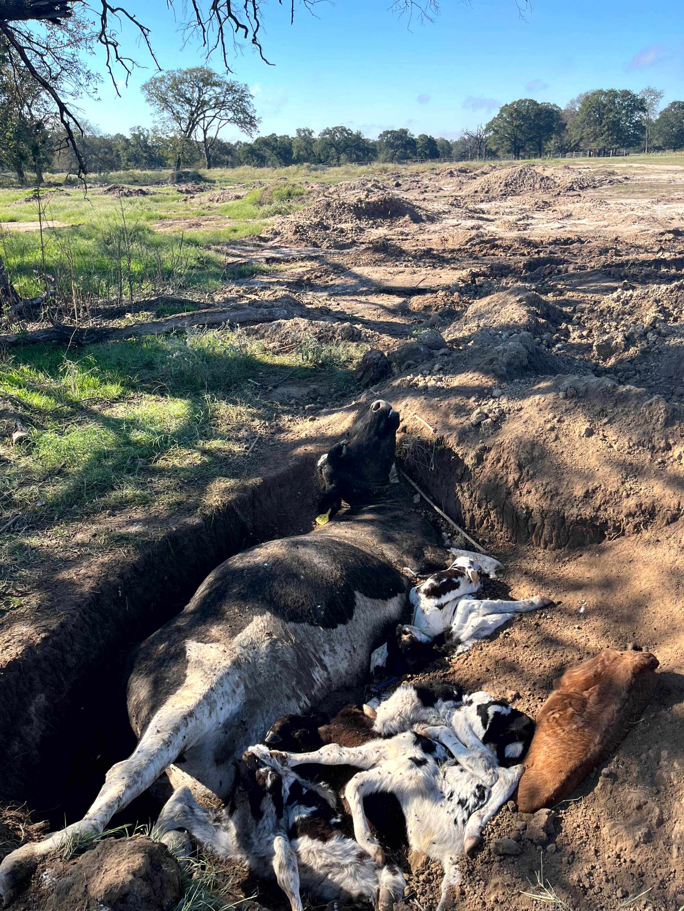 According to the whistleblower, on this farm, which is certified organic and claims to be the “largest organic dairy in North Texas,” many if not most calves die from ailments that include scours and pneumonia. The whistleblower provided photos showing dead calves left to rot. Their allegations include that cows were injured and crippled by nails left inside bedding and that other bedding and living areas were saturated with waste.